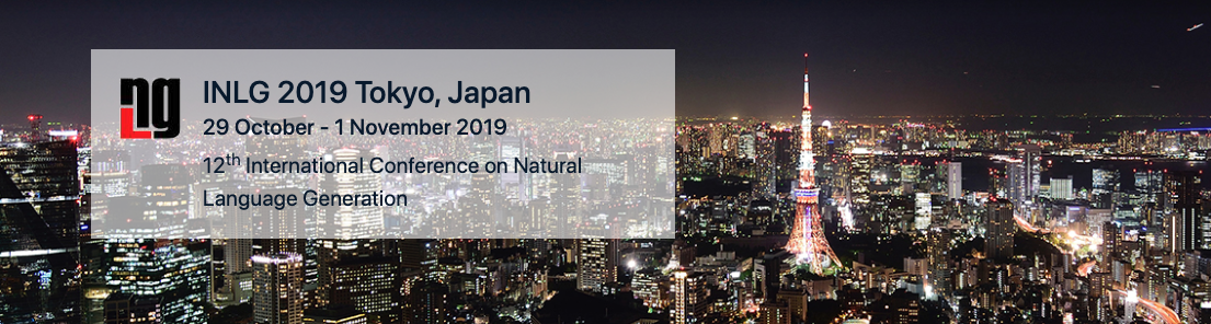 The 12th International Conference on Natural Language Generation (INLG 2019) organised by the Artificial Intelligence Research Center of Japan (AIRC, AIST), will be held at the National Museum of Emerging Science and Innovation (Miraikan) in Tokyo, Japan, October 29 - November 1, 2019. The conference takes place immediately prior to EMNLP-IJCNLP 2019, which will be held in Hong Kong starting November 3.